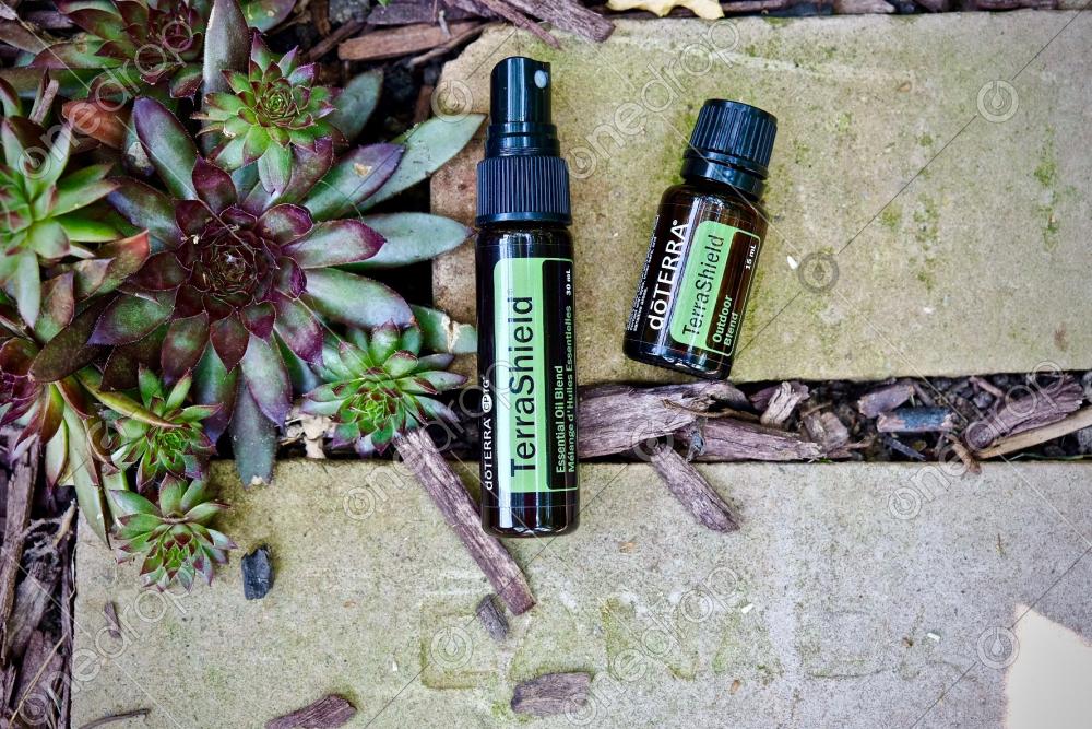 TerraShield Spray and 15ml bottle in a natural garden backdrop.