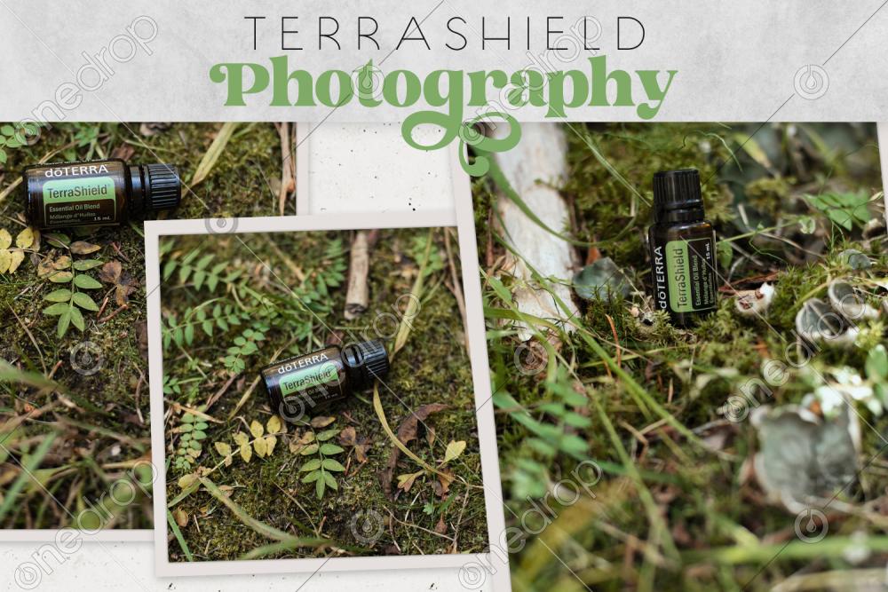 Four images of TerraShield essential oil in the Boreal Forest, BC Canada.