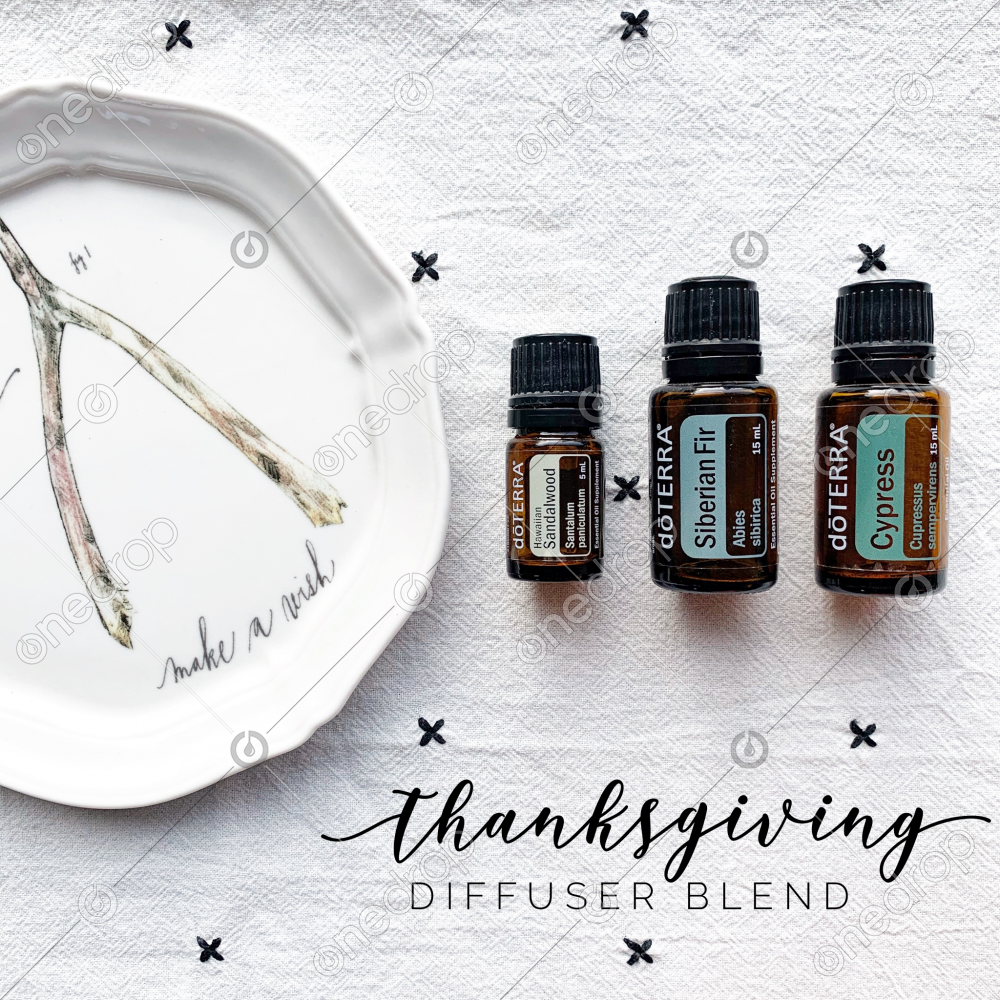 Thanksgiving Diffuser Blend: 2 drops Sandalwood, 2 drops Siberian Fir, & 4 drops Cypress.