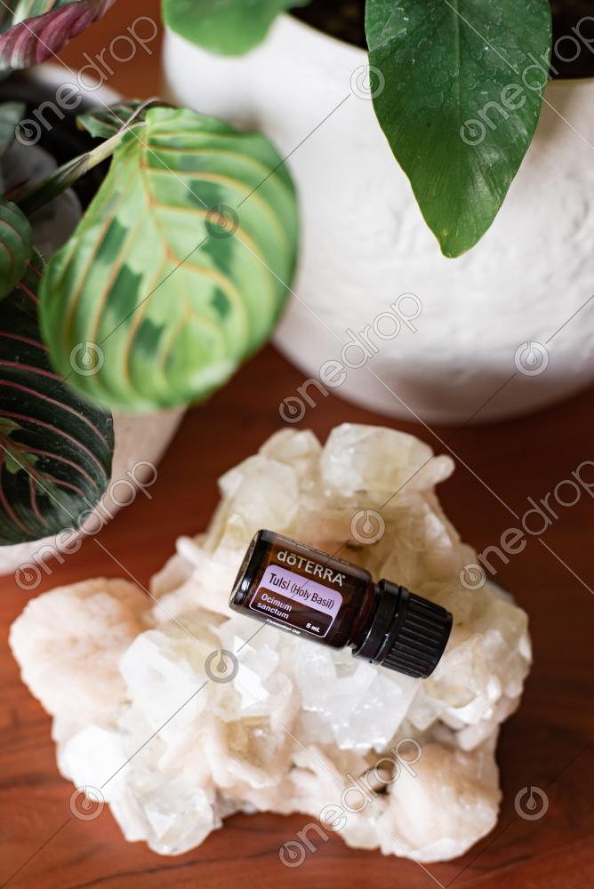 2 Photos of Tulsi with crystal and plants in background. Can be cropped and used for social media, emails, and with room for text.