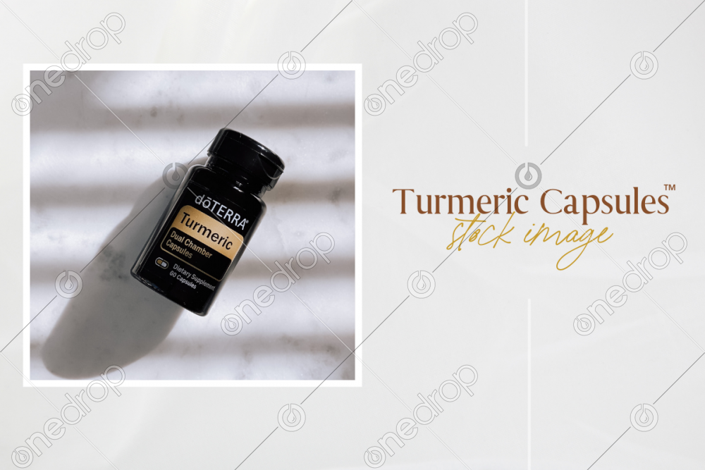 Turmeric dual champer capsules high res photo on marble background with shadows