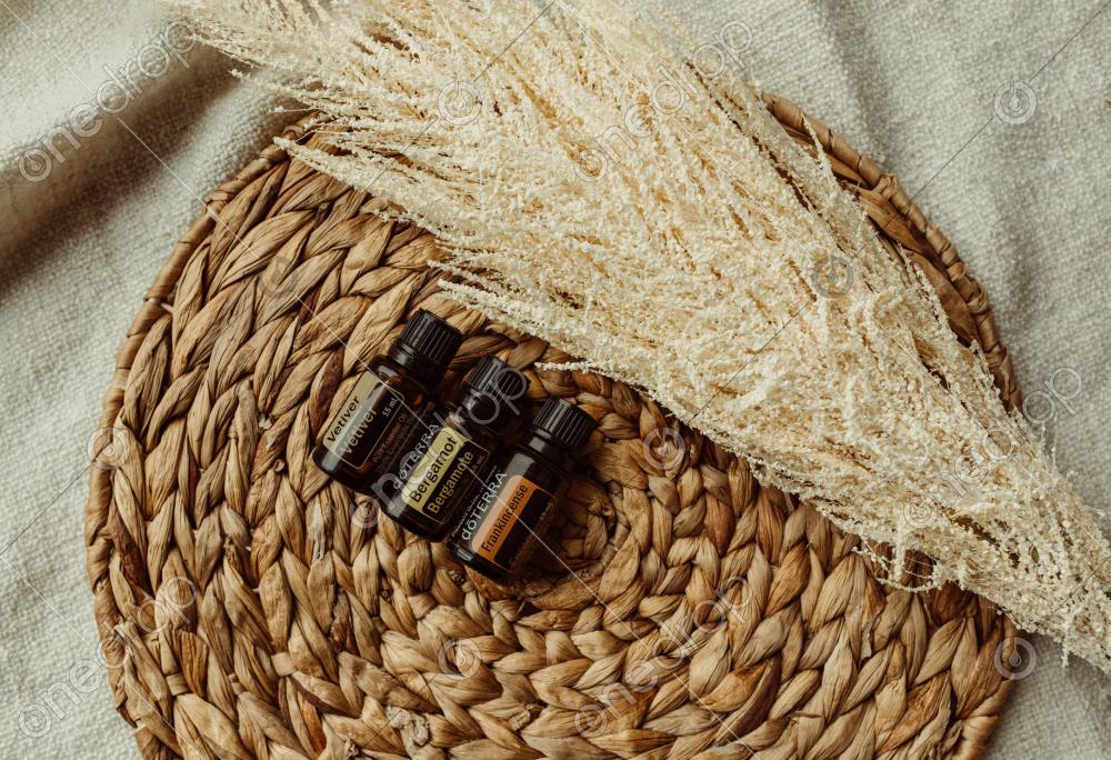 Vetiver, Bergamot, dōTERRA Frankincense Diffuser Blend on Rattan Charger with Spring Florals
