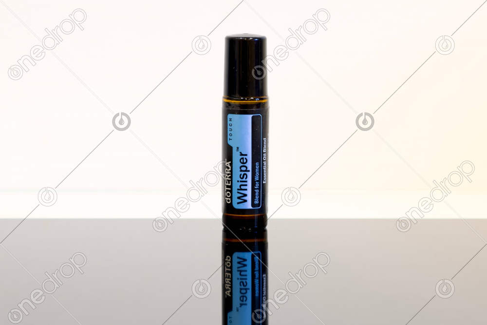 High-resolution photo with Whisper 10 mL roll-on on a mirrored surface.