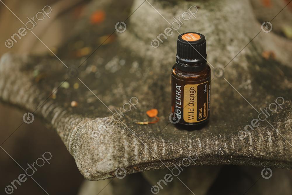 dōTERRA Wild Orange - The Oil of Abundance - 15ml bottle on ceramic statue