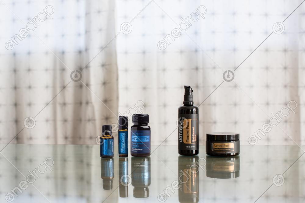 Image has Adaptiv™ trio on left and Yarrow/pom serum and capsules on the right