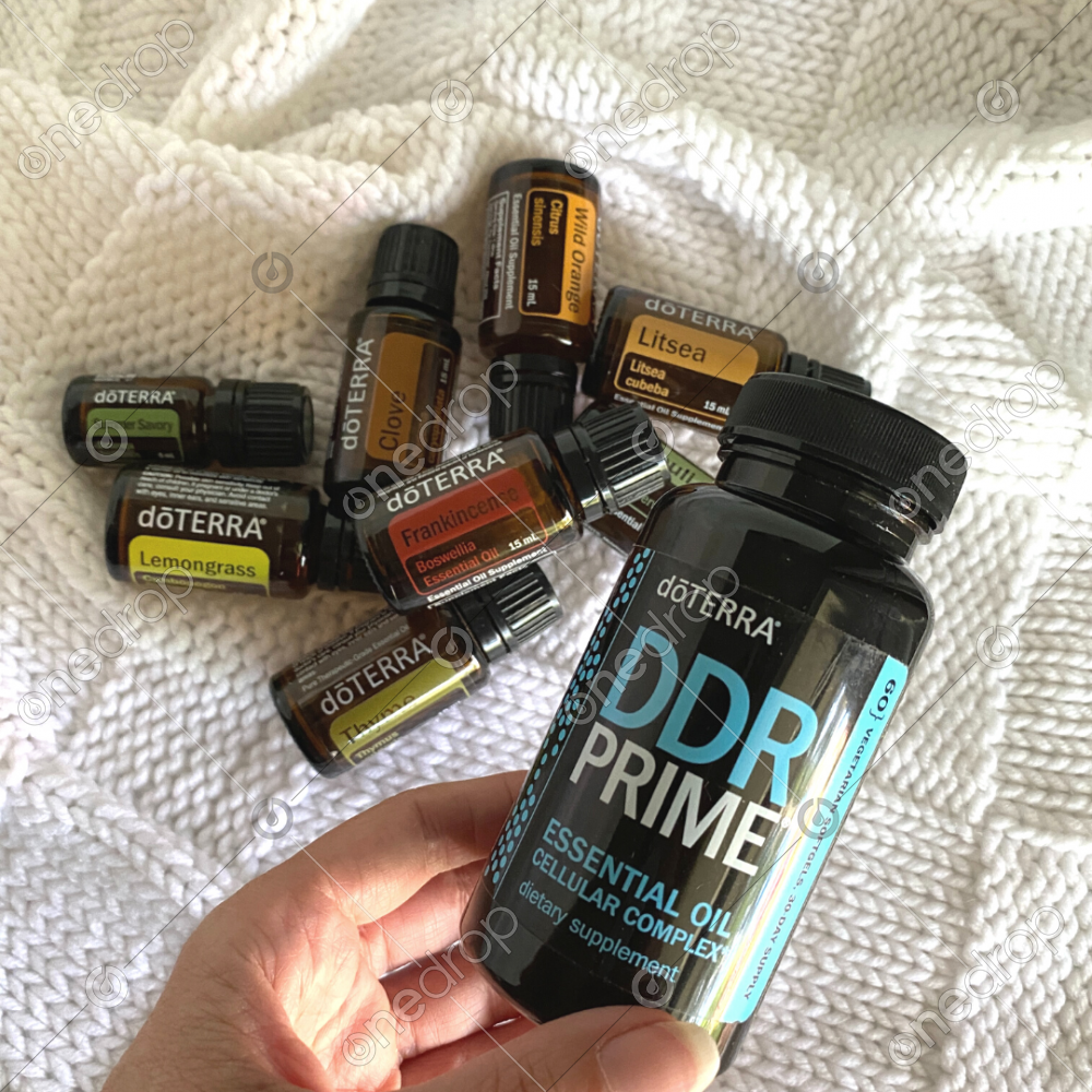 Highlight all the essential oils in DDR Prime. Add captions that ask whether they would rather buy every oil seen OR simply buy DDR Prime, ready to go in a convenient softgel. This also highlights the affordability.