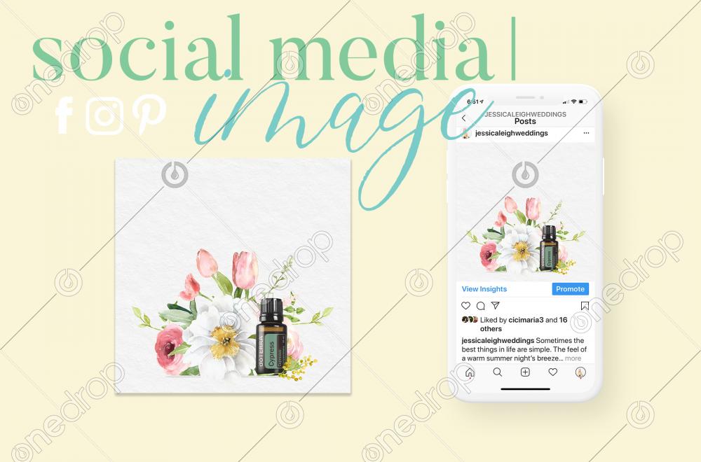 15 ml Cypress social media sized image with flowers and a white background. Perfectly sized for Instagram, but can be used for Facebook or other purposes as well.