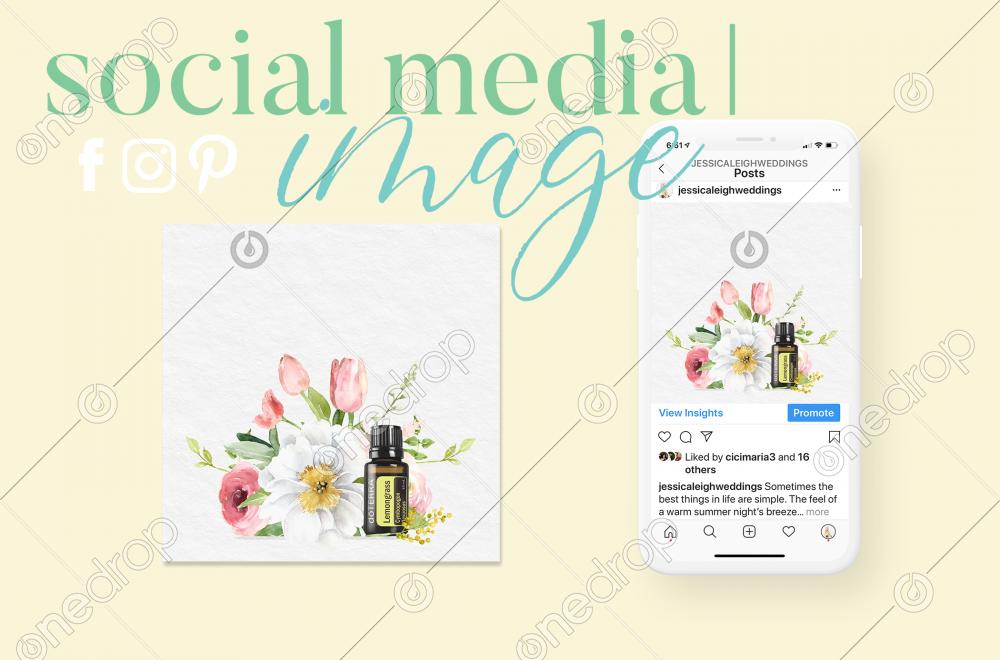 15 ml Lemongrass social media sized image with flowers and a white background. Perfectly sized for Instagram, but can be used for Facebook or other purposes as well.