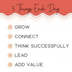 Five things to do every day to build your business. As stated by John C. Maxwell; Grow, Connect, Think Successfully, Lead, and Add Value.