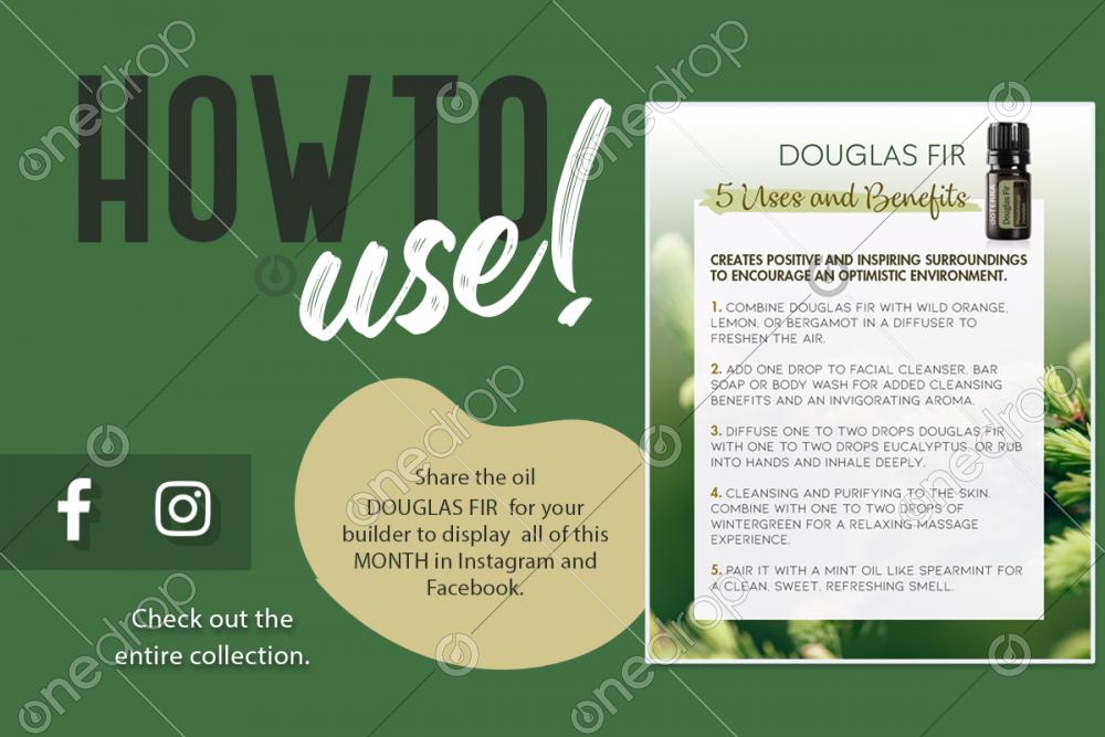 • Use it to educate your community on the use of the soothing properties of the Five USES AND BENEFITS OF Douglas Fir oils. For skin, because it holds cleaning and purifying properties when applied topically.