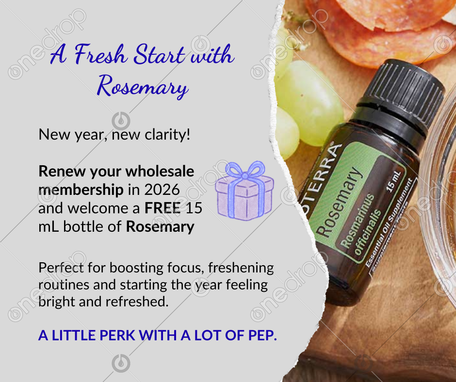 New year, new clarity! Renew your wholesale membership in 2026 and welcome a FREE 15 mL bottle of Rosemary—perfect for boosting focus, freshening routines, and starting the year feeling bright and refreshed. A little perk with a lot of pep ✨