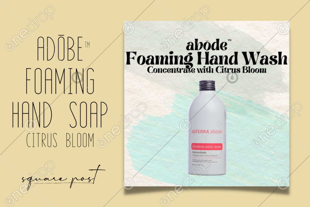 Square post showing abōde™ Foaming Hand Soap Concentrate - Citrus Bloom bottle, launched at doTERRA's 2021 evōlve Convention.