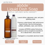 One image with description of abōde Liquid Dish Soap Refill and dispenser.