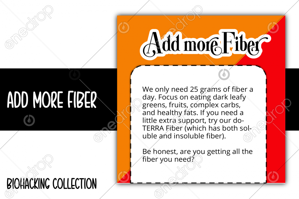 We only need 25 grams of fiber a day. Focus on eating dark leafy greens, fruits, complex carbs, and healthy fats. If you need a little extra support, try our doTERRA Fiber (which has both soluble and insoluble fiber).