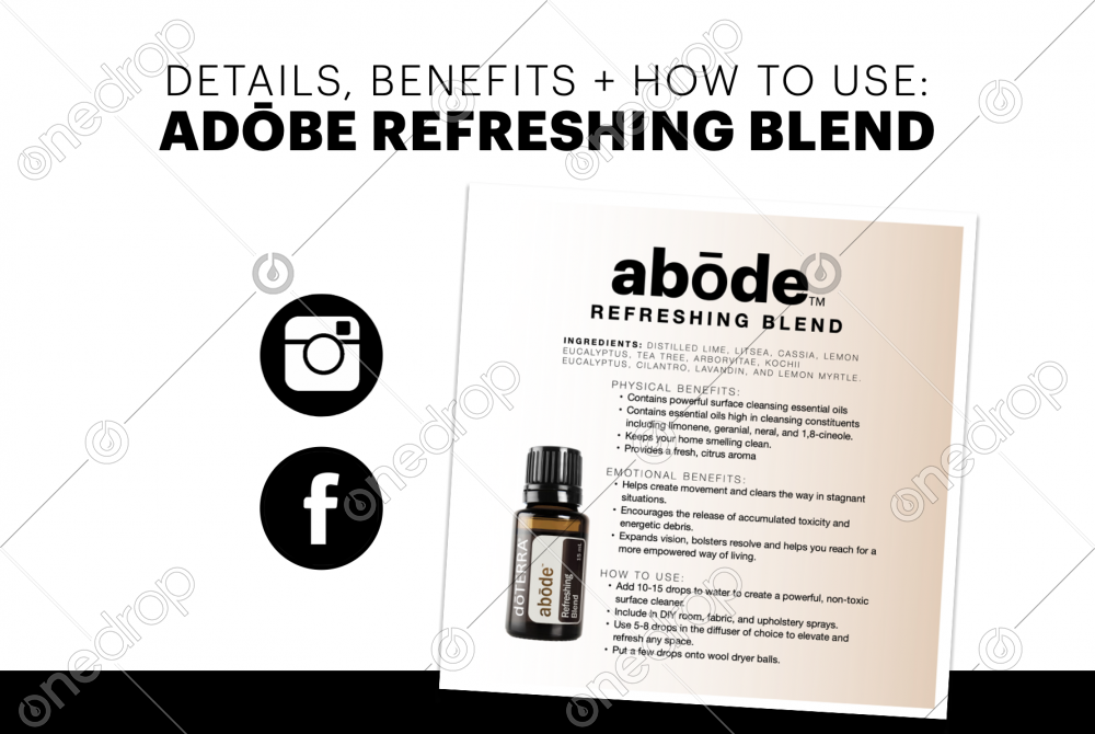 Square Social Media Image with Physical Benefits, Emotional Benefits + How to Use for adōbe Refreshing Blend