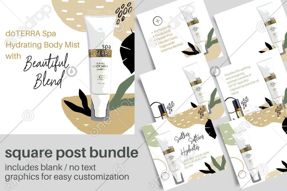 8 Piece Square Post Bundle featuring the dōTERRA Spa Hydrating Body Mist with Beautiful Blend