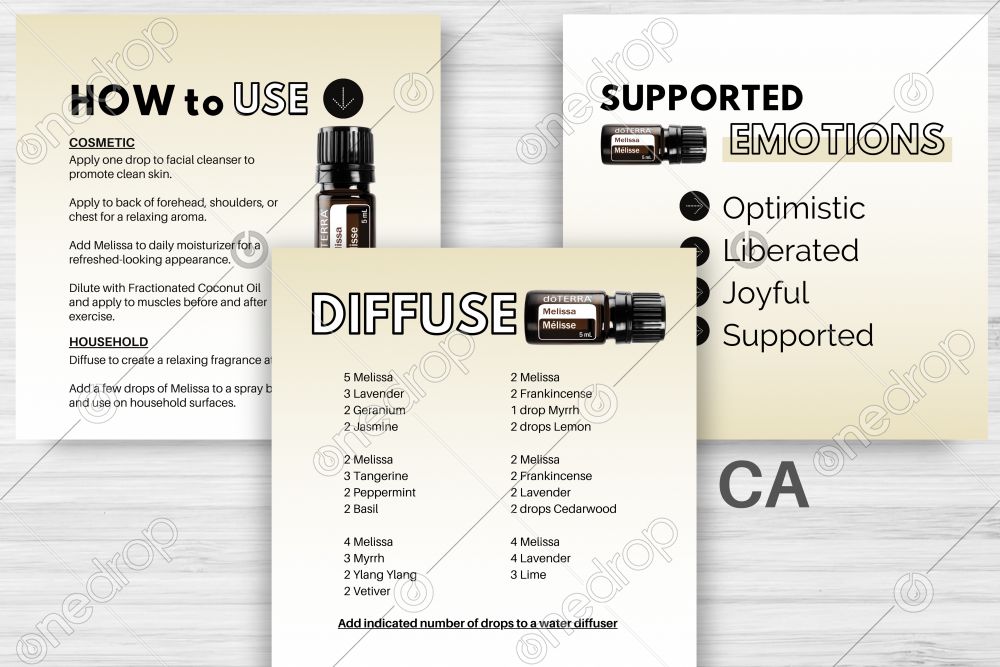 • includes uses, supported emotions and diffuser blends