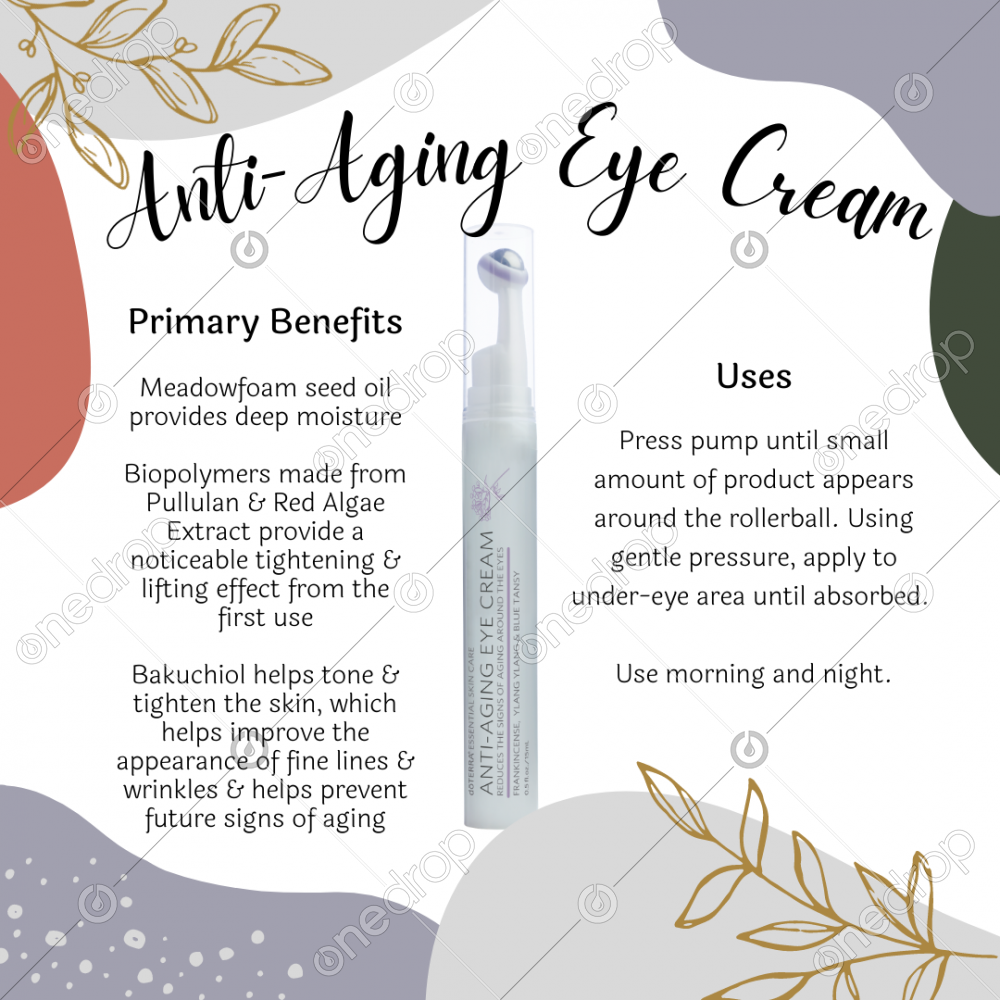 One image with Anti-Aging Eye Cream description of Uses and Primary Benefits.