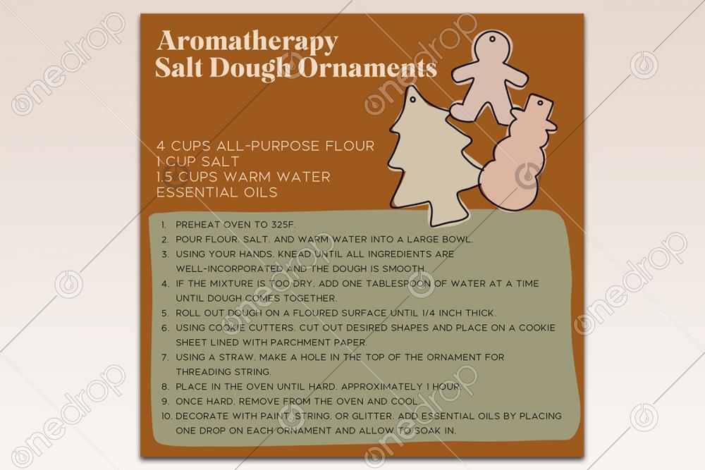 Ingredients + Instructions for making scented salt dough ornaments.