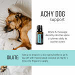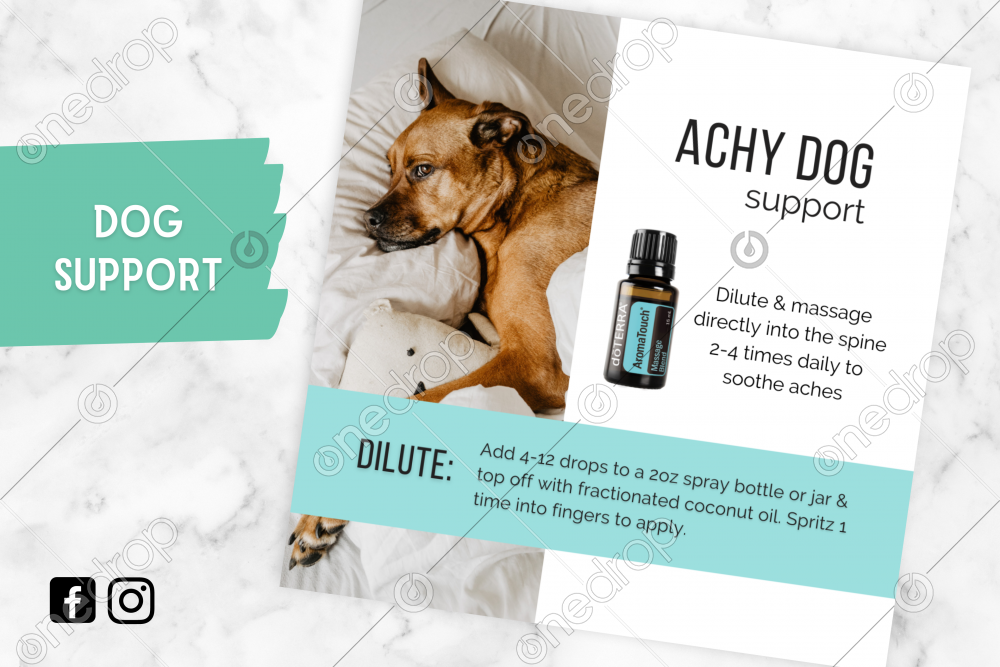 A top oil for aging dog support, AromaTouch. Graphic includes DIY recipe to predilute.