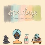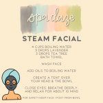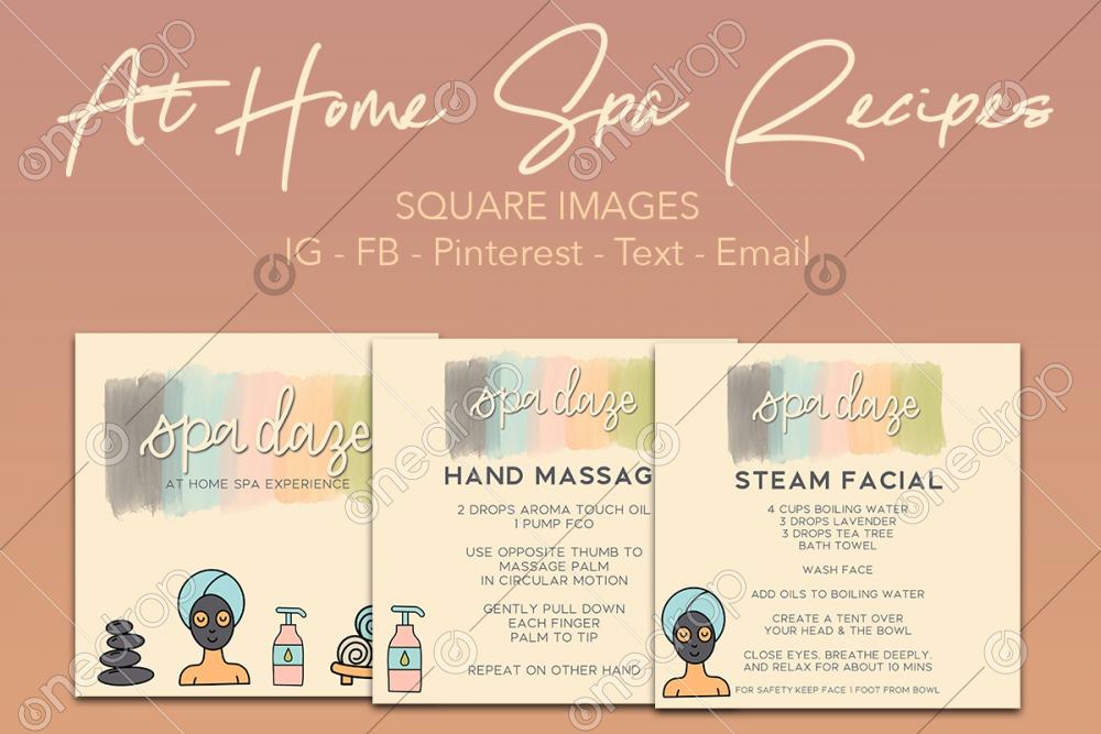 Recipes for a relaxing at home spa experience. Images include a spa daze cover, steam facial, hand massage, spa diffuser blend, and hot compress towel.