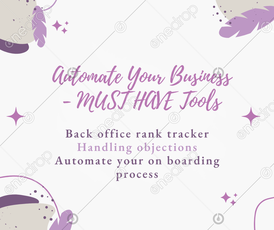 This graphic is part of the Automate your business - MUST HAVE tools Collection with the Done-For-You-Copy. The content includes Back office rank tracker, Handling objections. Automate your on-boarding process and more. (The Done-For-You-Copy is downloaded separately.) All the graphics for the collection are below!