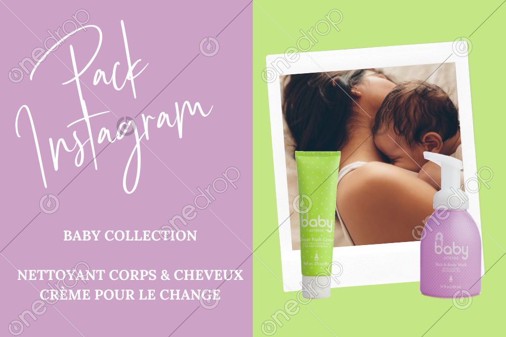 7 Publications Instagram pour présenter la nouvelle Baby Collection en Europe: Crème de change et Gel lavant Corps/Cheveux.