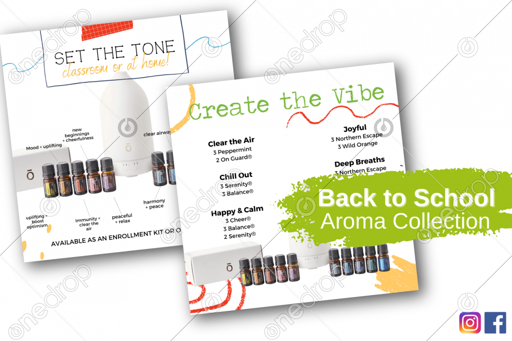 2 graphics supporting Back to School with Aroma Collection Back to School Theme (but could be used other times) especially in August or September. What makes this "Back to School" is the focus on diffuser blends good for kids headed back to school. However, this bundle can be used all year long Not sure what to say for each post? Check out the DONE FOR YOU SCRIPTS + 30 DAYS of Graphics in one download. Here: BACK TO SCHOOL Here is a Link to all my Back to School individual items: HERE FOLLOW ME: Follow my contributor page for more graphics WATERMARK: Please do not share this bundle with your team. If your team is interested please direct them to OD to download. Feel free to use this 10% off code for their membership: https://www.onedropdesigns.com/?rc=4n6y5vO NEED HELP WITH THIS GRAPHIC: If you have feedback about this bundle, or any requests to modify it feel free to click on the flag above. If you would like a direct response, please include your name and email. Otherwise, your feedback is anonymous and I'm unable to reply directly to you. Email me with suggestions for other themes too!