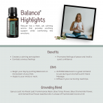 This image includes the benefits, uses, and ingredients of the Balance blend.