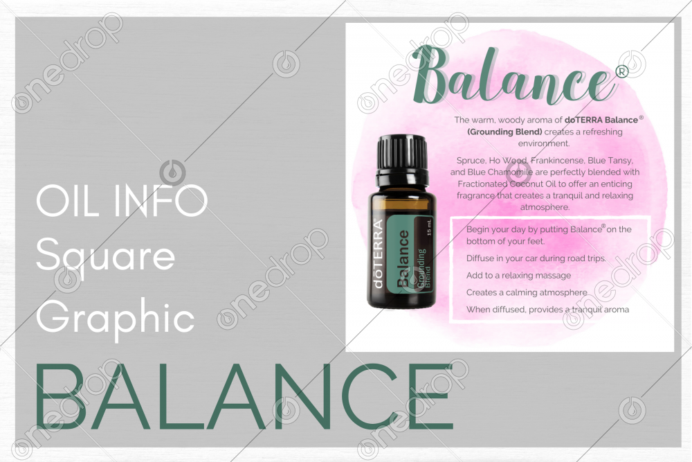 Square oil info graphic with everything you need to know about Balance (Grounding) blend!
