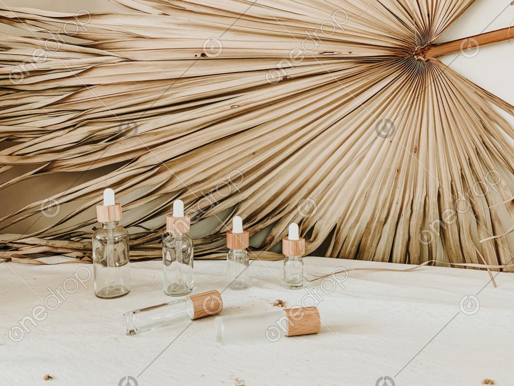 Various size empty boho style dropper bottles and roller bottles.