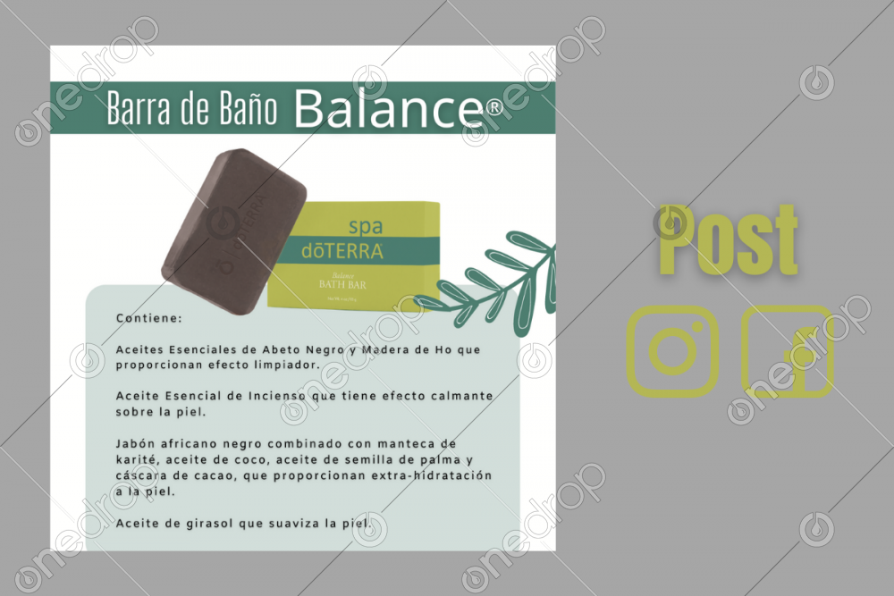Imagen en formato cuadrado para Post de Instagram / Facebook con la Barra de Baño Balance, sus ingredientes y beneficios.