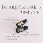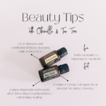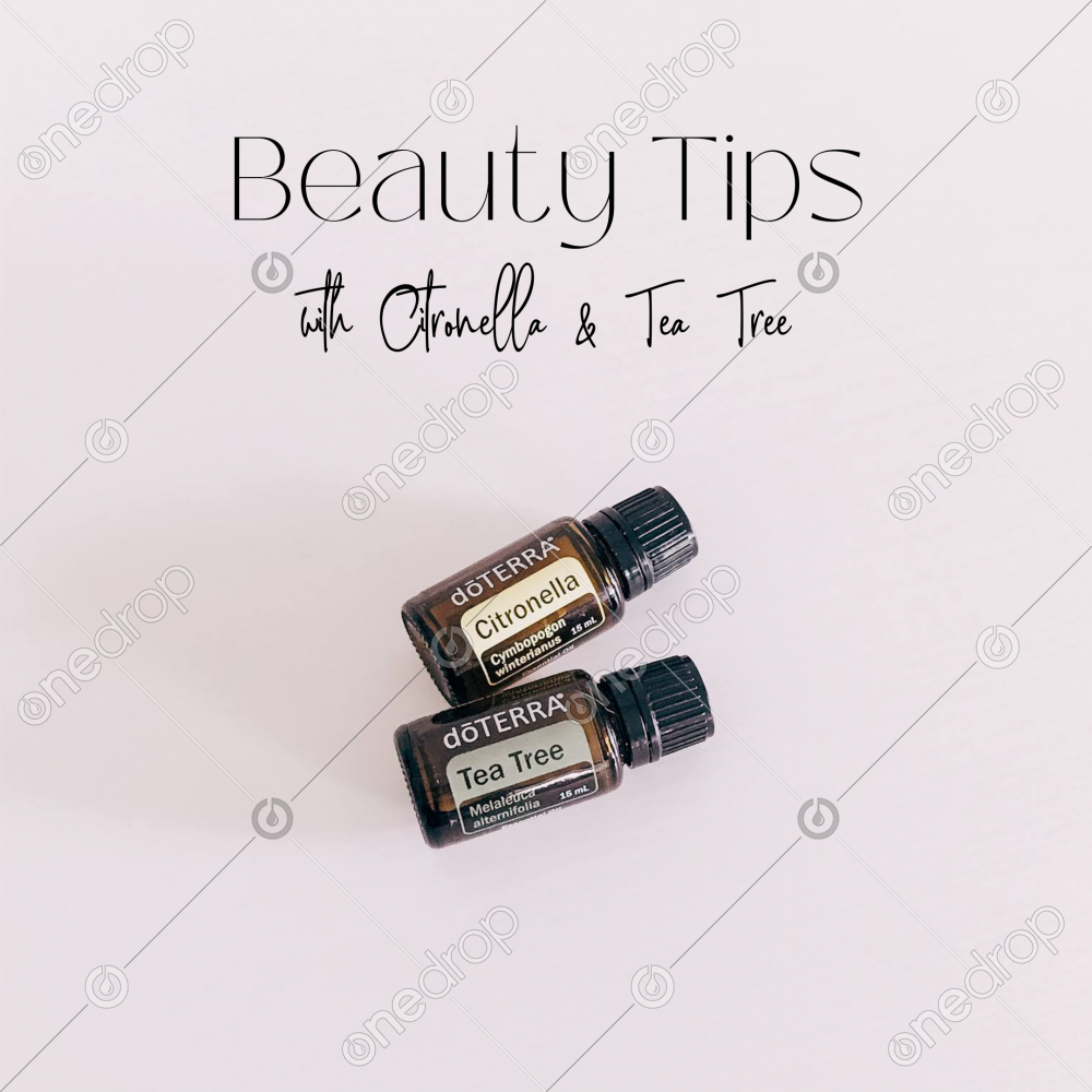 - Graphics showing beauty tips and essential self care with Citronella & Tea Tree essential oils.