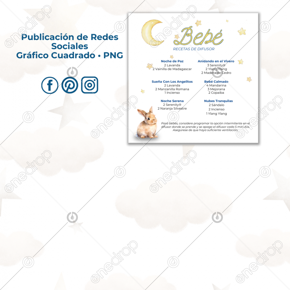 Gráfico cuadrado con recetas de difusor para bebé Tema y colores de bebé Perfecto para compartir con los clientes o publicar para obtener una descripción general rápida Publicaciones en redes sociales Imágenes de publicaciones de blog Pines de Pinterest Historias de Instagram Historias de Facebook Mensajes de texto WhatsApp