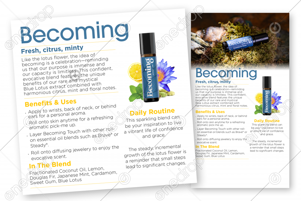 The lotus flower ends each day under water, only to rise above the surface each morning anew, fresh, and pure. Becoming Touch Blend serves as a reminder of the bright hope that accompanies personal growth.