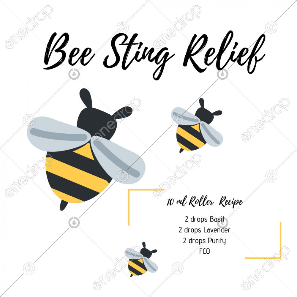 Graphic for Instagram. Roller recipe for bee sting relief.