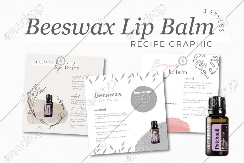 A square recipe graphic incorporating Patchouli to make a Beeswax Lip Balm.