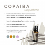 - Copaiba Oil, similar to Black Pepper, can help soothe anxious feelings and, when taken internally, supports a healthyimmune and cardiovascular system.