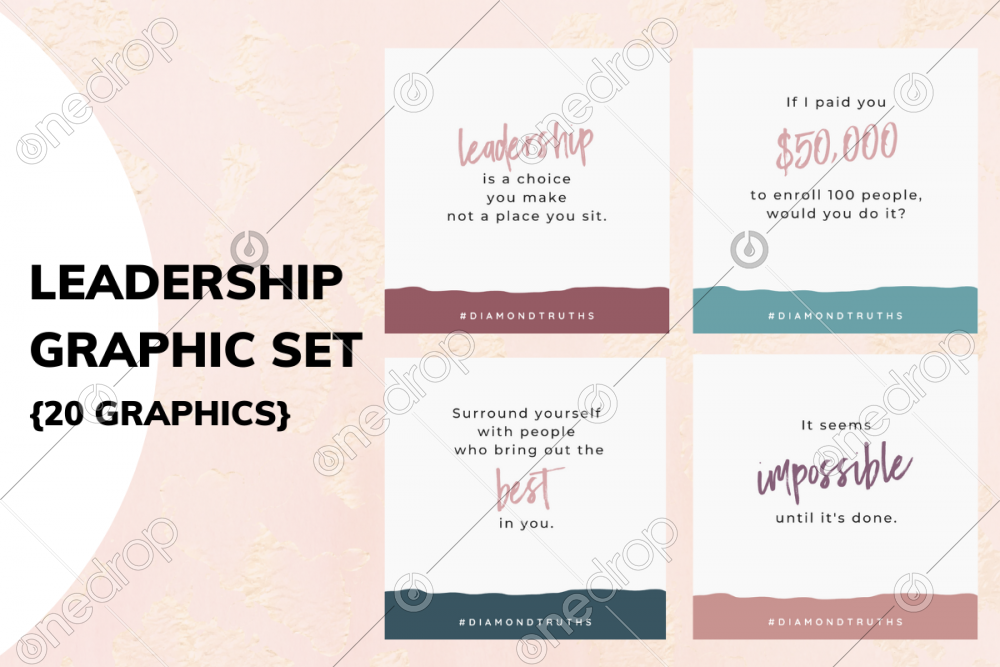 A 20 graphic leadership series to use in your business builder group or to send out via text. Inspiration and motivation quotes for your leaders.