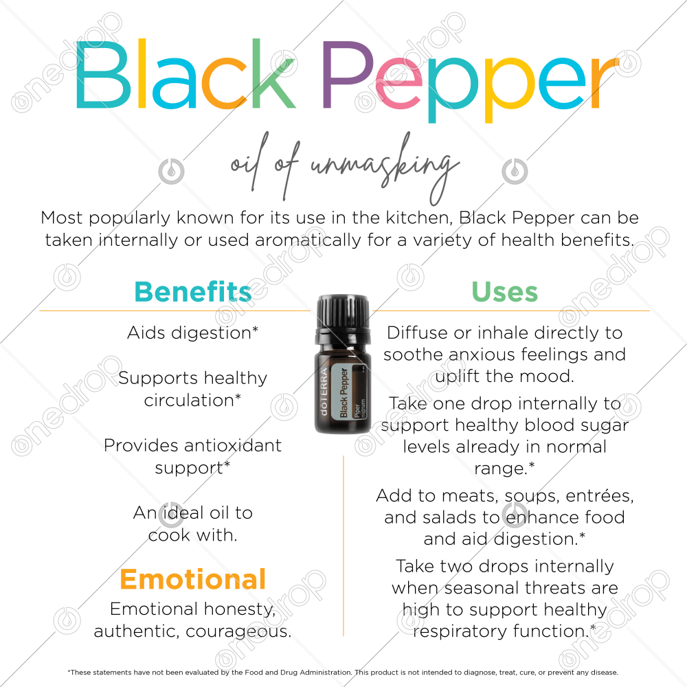 Most popularly known for its use in the kitchen, Black Pepper can be taken internally or used aromatically for a variety of health benefits.