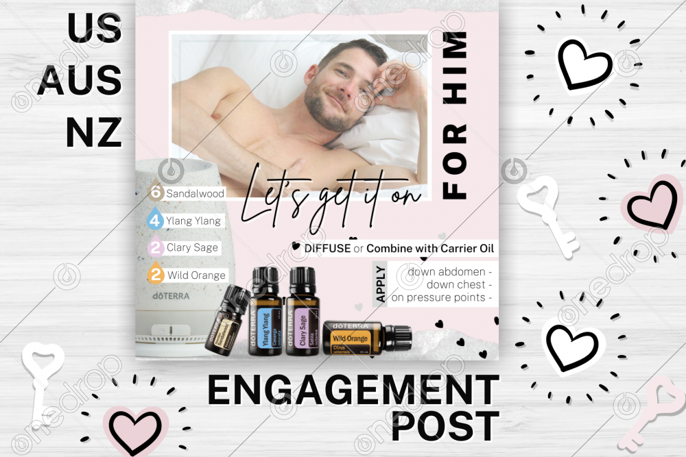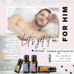 - Suggests diffusing or applying the following oils; Sandalwood, Ylang Ylang, Clary Sage, and Wild Orange (number of drops indicated)