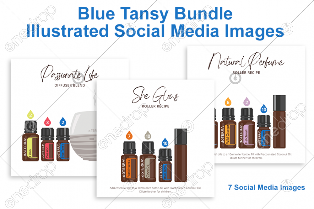 In this bundle, you will find 7 illustrated social media images for Blue Tansy! Post together or individually over time.