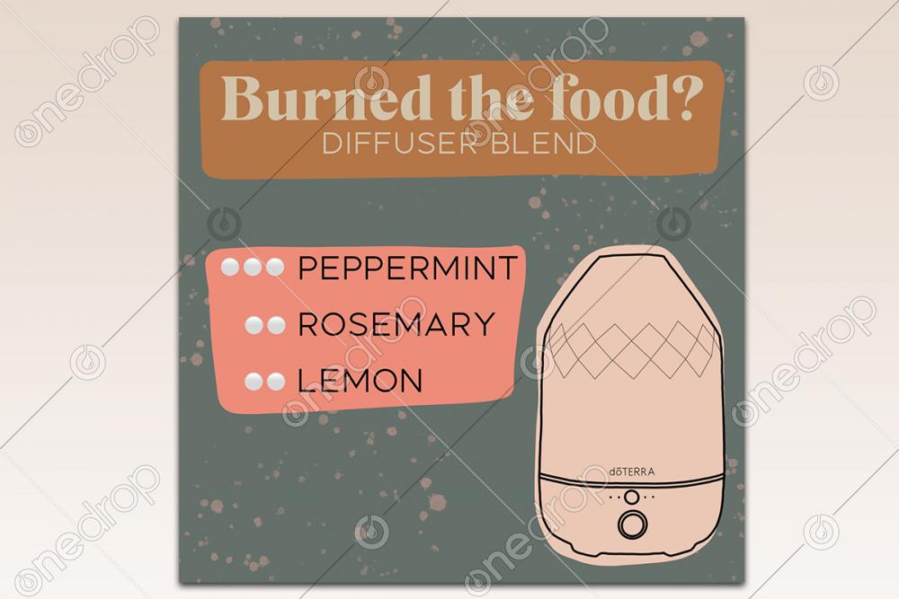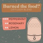 Kitchen smelling like burnt food? Use this diffuser blend featuring peppermint, rosemary, + lemon to purify the air.