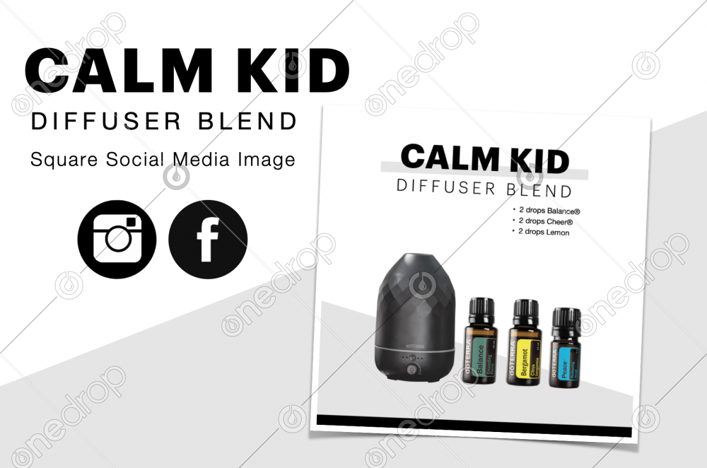 Calm Kid Diffuser Blend Square Social Media Image for easy posting + education.