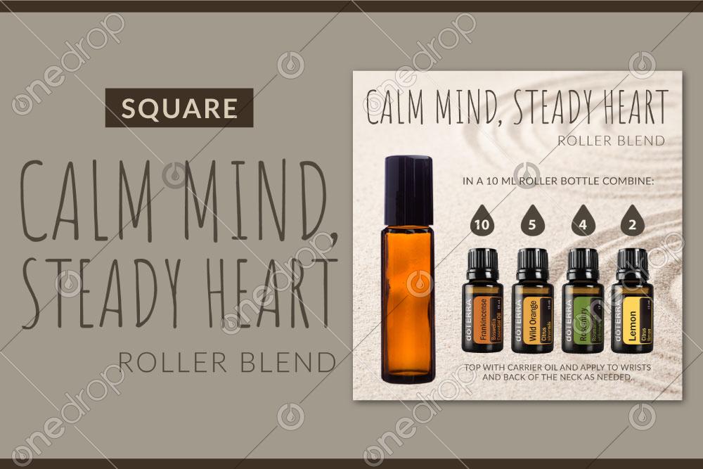 Calm Mind, Steady Heart Roller Blend recipe for social media post in SQUARE format.