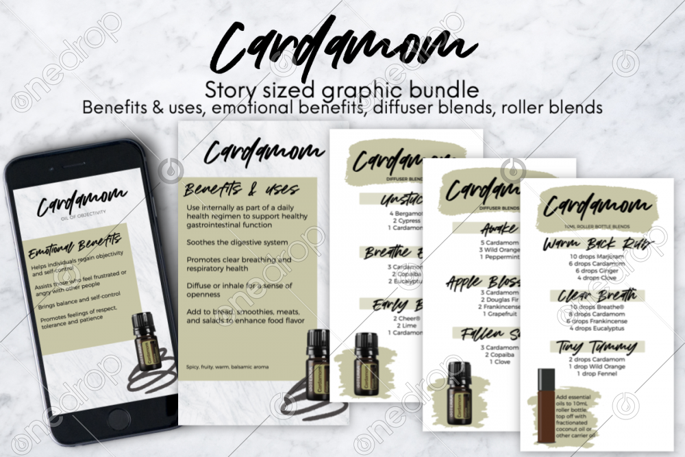 Story sized graphics for Cardamom, perfect for Instagram and Facebook stories and Pinterest pins or stories: Benefits & uses Emotional benefits Diffuser blends Roller bottle blends 5 story sized graphics **please watermark images to protect your investment If you have a request or comment, please use “provide feedback” to email me. If you want me to address you specifically, please include your contact info for a reply.