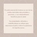 Post de carrusel (publicación) con 5 imágenes explicando los usos y beneficios del aceite esencial de Incienso con llamada a la acción al final.