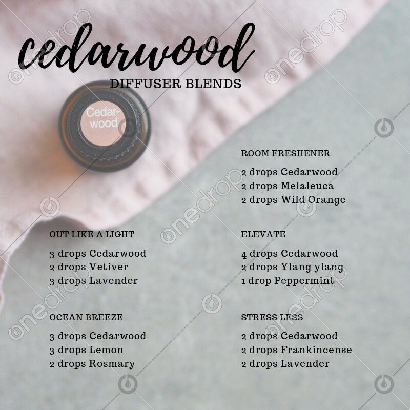 5 images of Cedarwood essential oil, all square and suitable for social media posts.