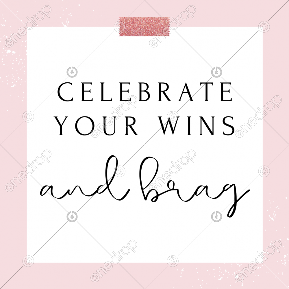 Square images for Instagram and Facebook posts with Celebrate your Wins and Brag