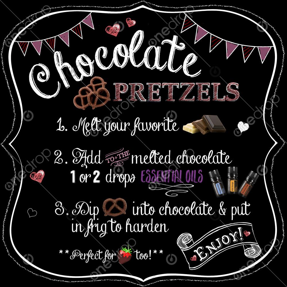 Here is a fun and unique visual illustrating an easy DIY recipe for chocolate pretzels infused with essential oils.